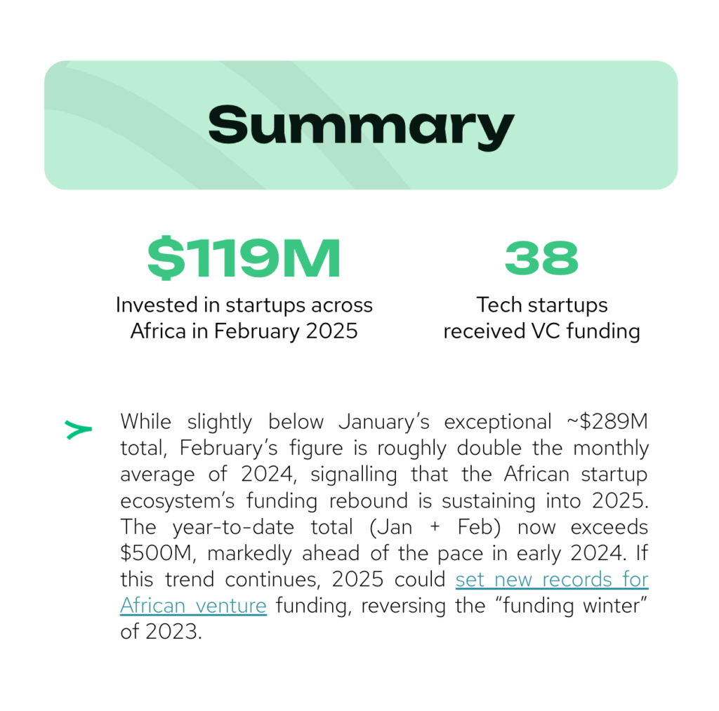 There is a clear sense of renewed optimism among venture investors in Africa. The strong start to 2025 – with African VC funding up ~240% year-on-year in January and continuing robustly in February – suggests that many investors who paused in 2023 are back in the market. Global venture trends also show signs of recovery, and Africa, with its growth story, is benefitting. Fintech remains a magnet, but investors are increasingly looking for differentiation; sectors addressing Africa’s fundamental needs (finance, energy, agriculture, healthcare) with tech-enabled models are in favour.